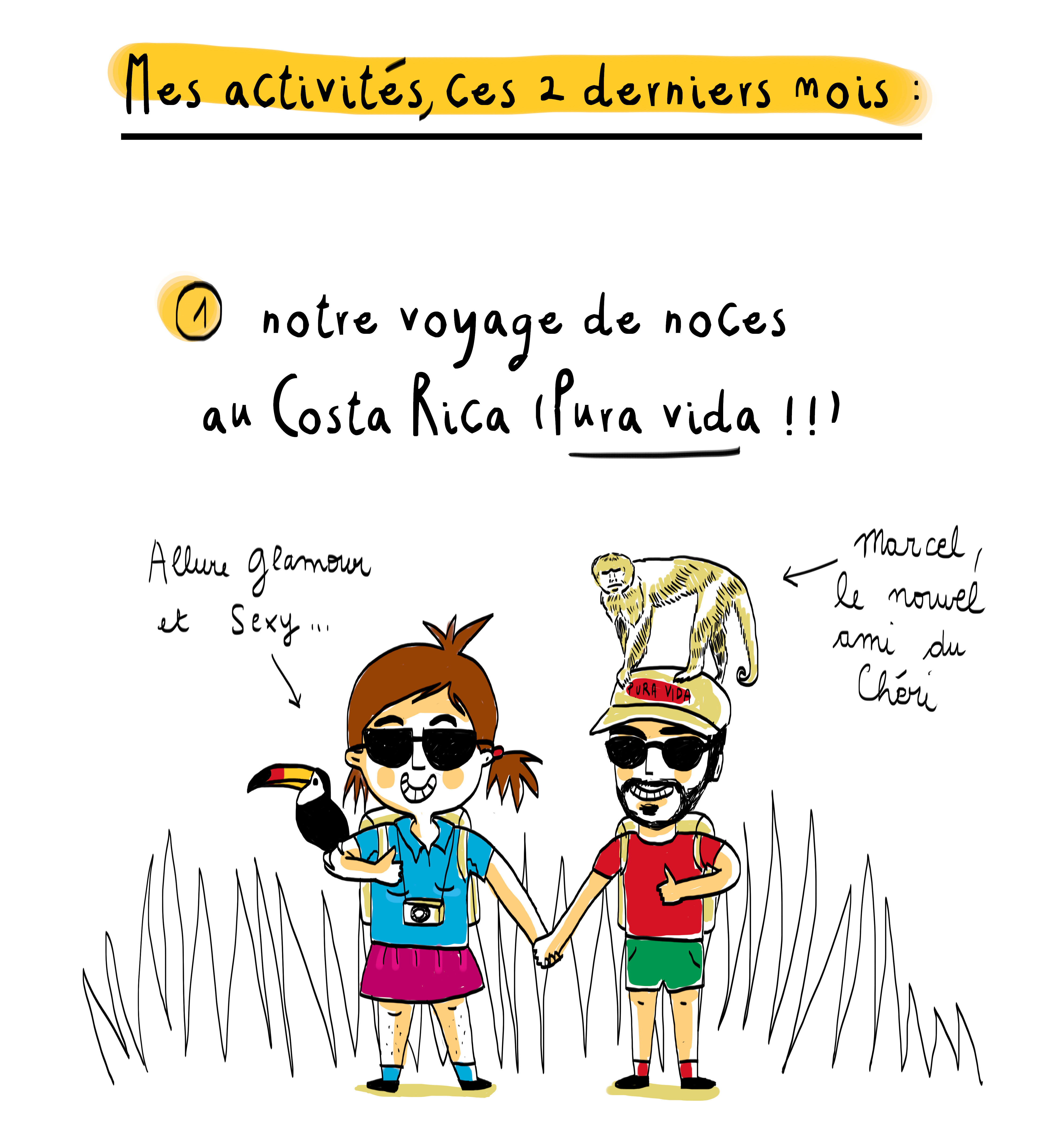 Non non, je n’étais pas entrée en phase d’hibernation, ni évaporée dans la nature… Enfin si, un peu, puisque je me suis perdue aventurée durant 2 semaines dans la jungle, de l’autre côté de l’Atlantique, mais pour la bonne cause : pour ma Honeymoon avec mon mari chéri 😉 !! J’ai pas mal vadrouillé et beaucoup travaillé durant ces 2 derniers mois, du coup, j’ai plein de petites choses à vous raconter ;).